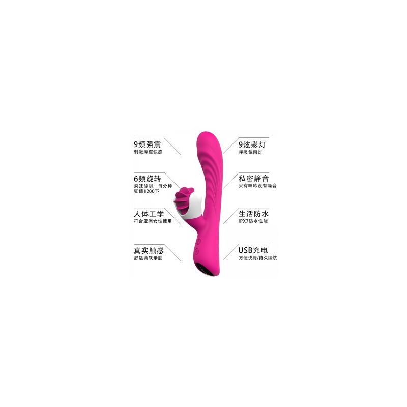 产品优点:外舔内震、9频震动模式、6种旋转模式、持久续航、疯狂舌舔、静音防水柔软亲肤、棒身纹理、摩擦更爽、棒身收腰设计,不会撑大私处、人体工学设计,贴合女性阴道曲线